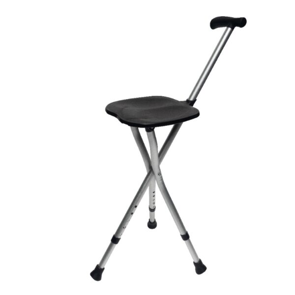 Idéale pour les promenades avec pauses confortables. Cette canne siège s’emmène facilement avec vous et se déploie pour former un siège facile à utiliser. Poignée anatomique souple. Réglable en hauteur pour une hauteur d’assise de 47,5 à 56 cm en 5 positions. Coloris noir. Structure aluminium et siège en plastique. Poids maximum autorisé : 136 kg.