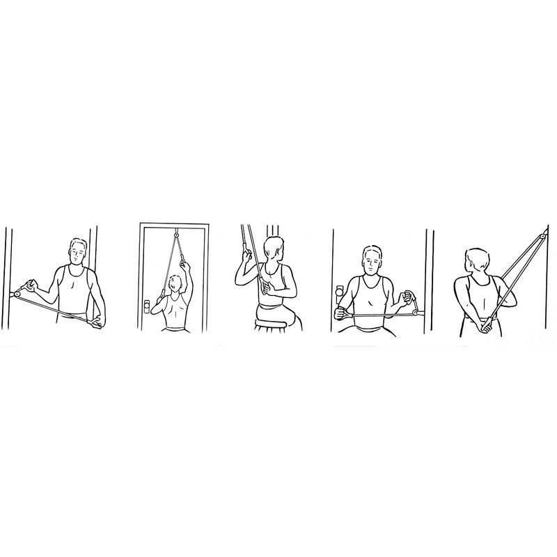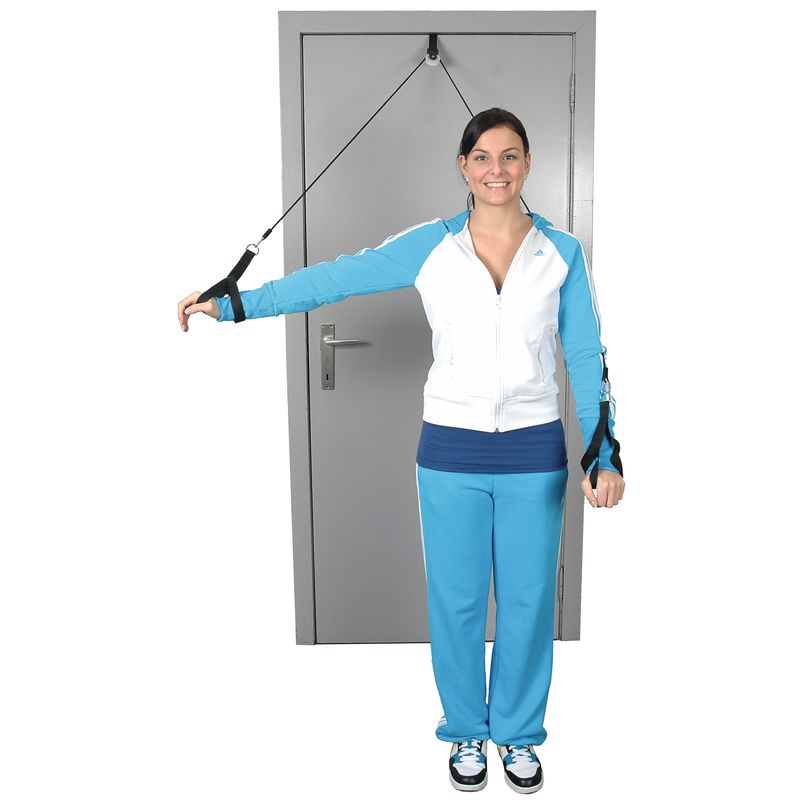 הגלגלת הזו ניתנת להתקנה מעל או בצד דלת סגורה, ומיועדת לתרגול והנעת הגפיים העליונות (כיפוף, הרחקה, סיבוב ועוד). ניתן לבצע מגוון רחב של תרגילים בעמידה, ישיבה או שכיבה. הערכה כוללת תושבת עם גלגלת, חבל ניילון באורך 2 מטר ושתי ידיות בקצוות.