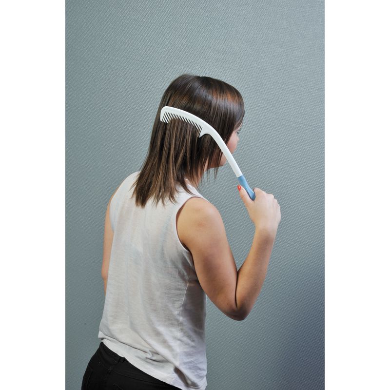 מסרק עם ידית ארוכה מאפשר לך לעצב את השיער שלך בלי לבצע תנועות גדולות. ידית ארגונומית רכה וללא לטקס